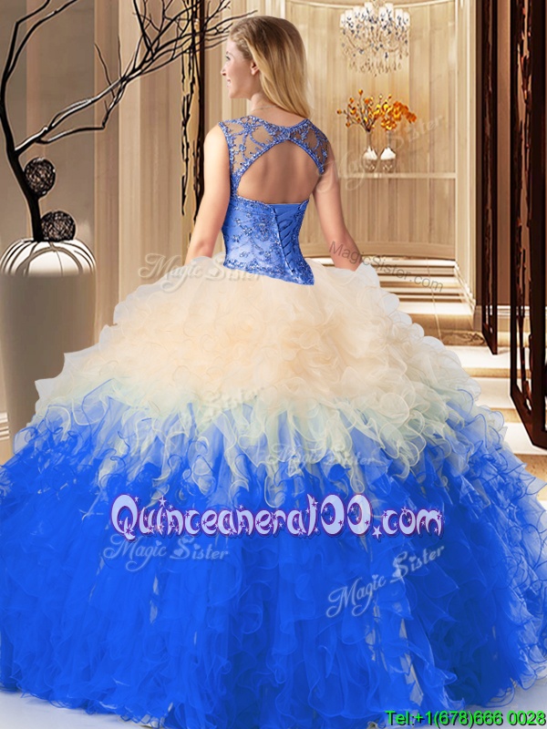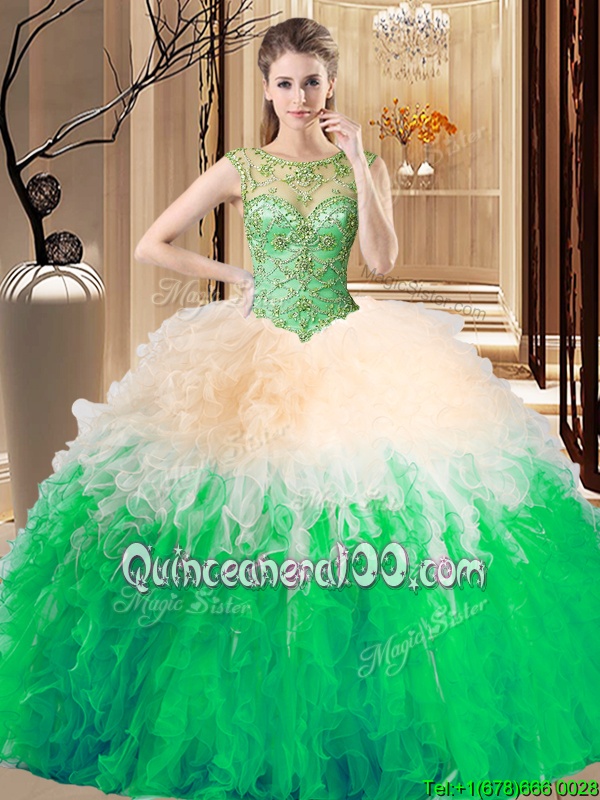 Fashion Scoop Floor Length Multi-color Quince Ball Gowns Tulle Sleeveless Spring and Summer and Fall and Winter Beading