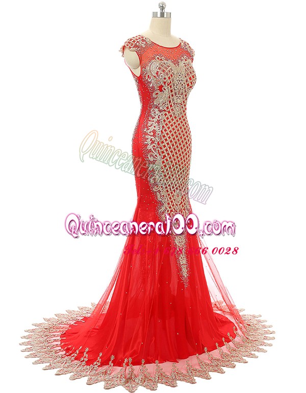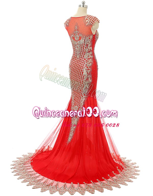 Neckline : ScoopShown Color : RedSilhouette : EmpireSleeve Length : sleevelessBack Detail : ZipperFabric : SatinEmbellishment : Beading,LaceOccasion : Prom,PartySeason : Spring,Summer,Fall,Winter