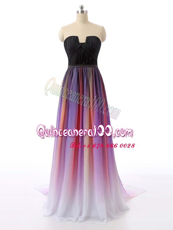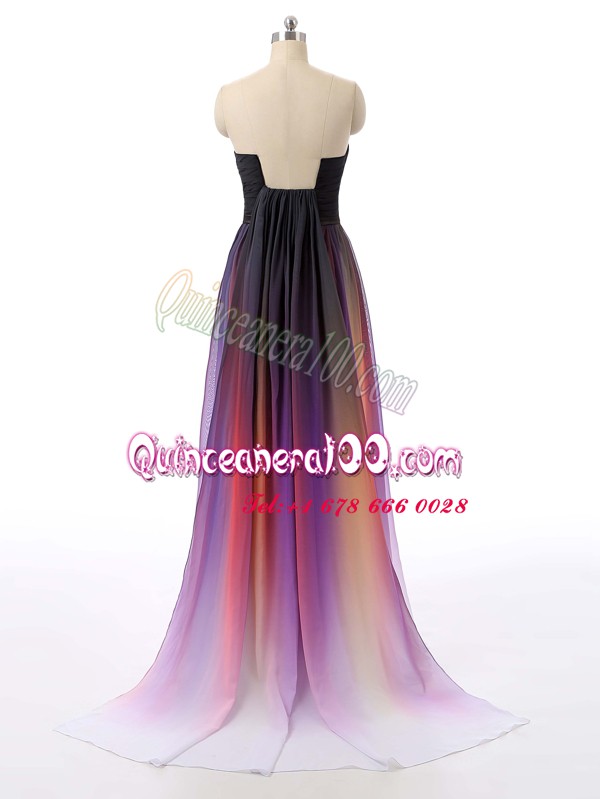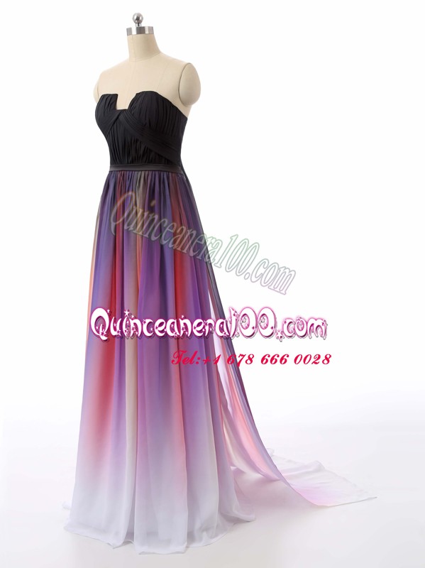 Neckline : SweetheartShown Color : Multi-colorSilhouette : EmpireSleeve Length : sleevelessBack Detail : ZipperFabric : ChiffonEmbellishment : RuchingOccasion : Prom,PartySeason : Spring,Summer,Fall,Winter