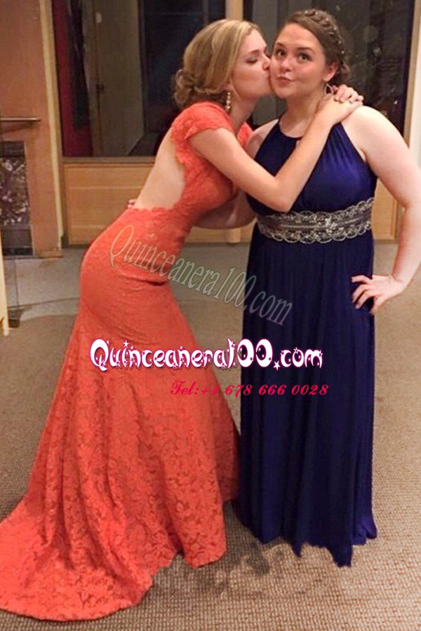 Neckline : V-neckShown Color : RedSilhouette : MermaidSleeve Length : short sleevesBack Detail : BacklessFabric : LaceEmbellishment : LaceOccasion : Prom,PartySeason : Spring,Summer,Fall