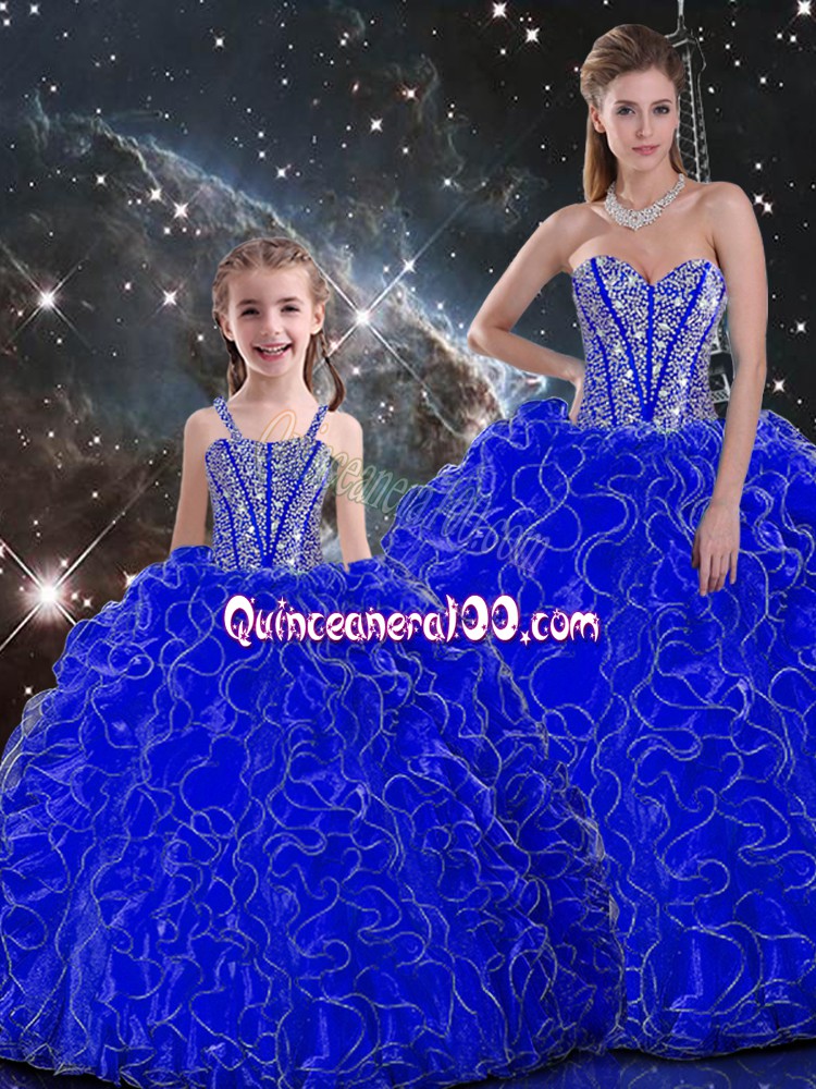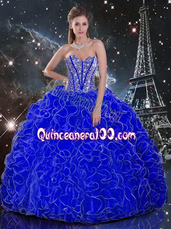 Super Sleeveless Beading and Ruffles Lace Up Quince Ball Gowns