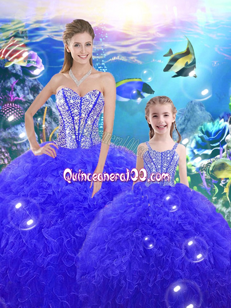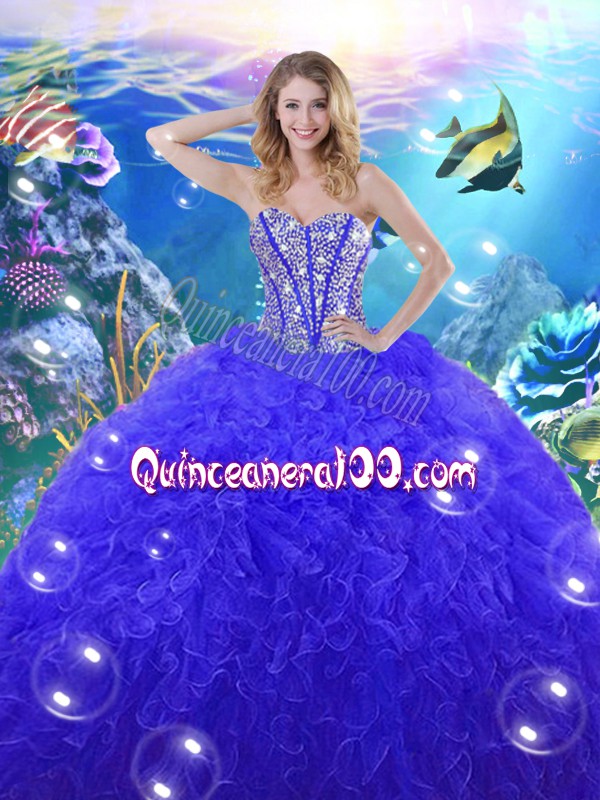 Neckline : SweetheartShown Color : Royal BlueSilhouette : Ball GownsSleeve Length : sleevelessHemline : floor lengthBack Detail : Lace upFabric : OrganzaEmbellishment : Beading,RufflesOccasion : Military Ball,QuinceaneraSeason : Spring,Summer,Fall,Winter