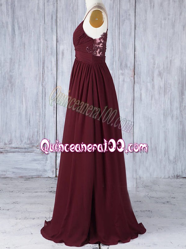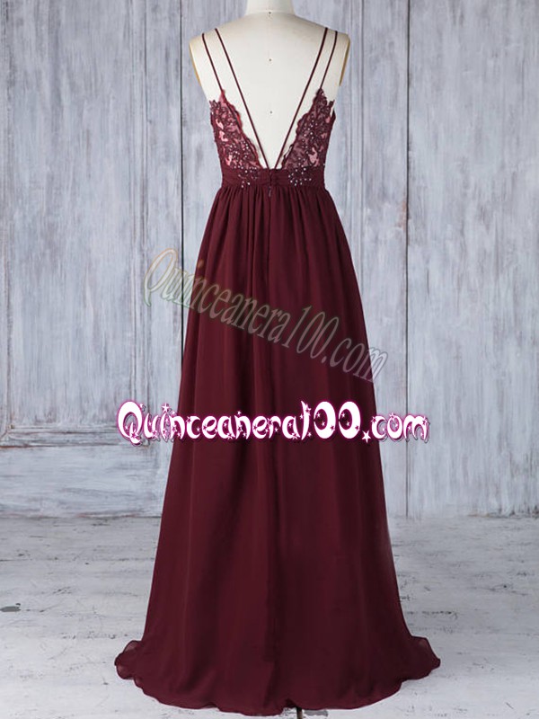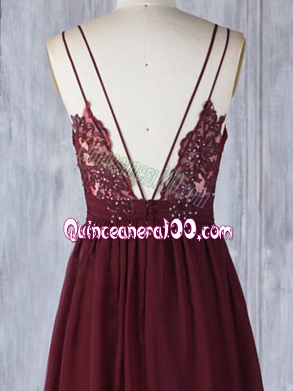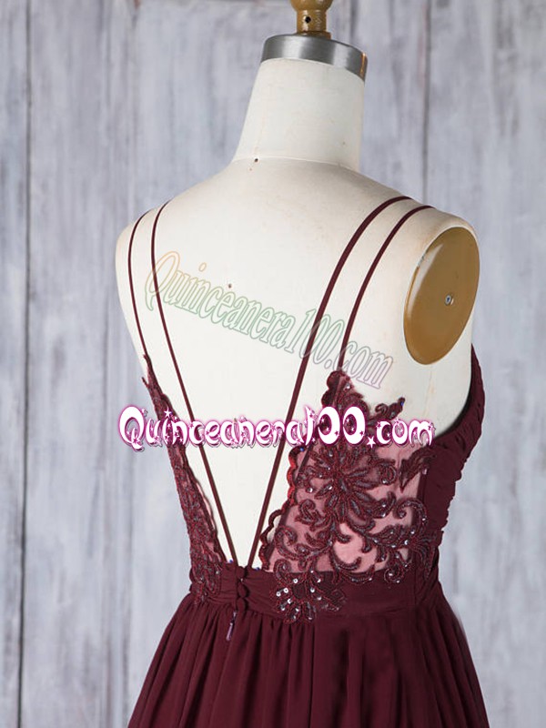 Neckline : StrapsShown Color : BurgundySilhouette : EmpireSleeve Length : sleevelessHemline : floor lengthBack Detail : ZipperFabric : ChiffonEmbellishment : AppliquesOccasion : Prom,Party,Wedding PartySeason : Spring,Summer,Fall,Winter