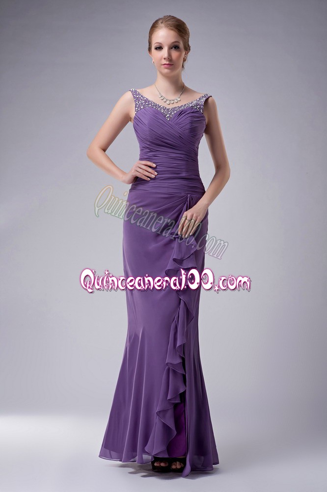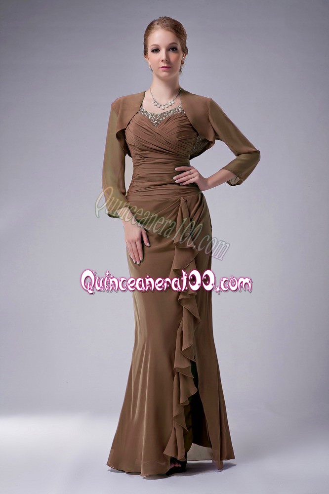 Neckline : StrapsShown Color : BrownSilhouette : MermaidSleeve Length : sleevelessHemline : floor lengthBack Detail : ZipperFabric : ChiffonEmbellishment : BeadingOccasion : Prom,PartySeason : Spring,Summer,Fall,Winter