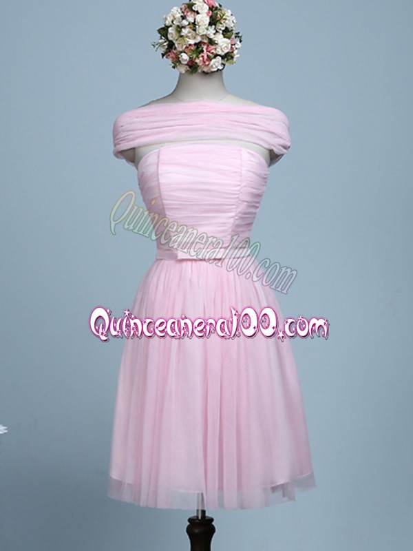 Neckline : StraplessShown Color : Baby PinkSilhouette : EmpireSleeve Length : sleevelessHemline : mini lengthBack Detail : Side zipperFabric : TulleEmbellishment : BeltOccasion : Prom,Party,Wedding PartySeason : Spring,Summer,Fall