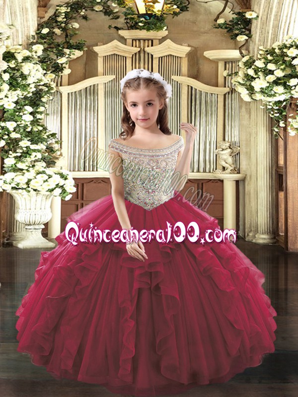 Neckline : Off the shoulderShown Color : FuchsiaSilhouette : Ball GownsSleeve Length : sleevelessHemline : floor lengthBack Detail : Lace upFabric : OrganzaEmbellishment : Beading,RufflesOccasion : Party,Sweet 16,Quinceanera,Wedding PartySeason : Spring,Summer,Fall,Winter