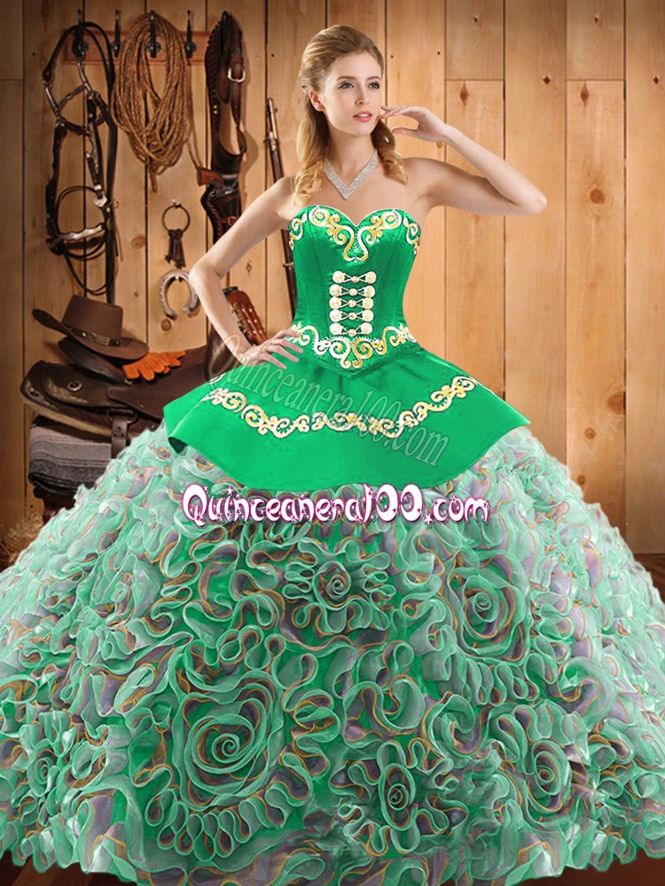 Edgy Embroidery Quince Ball Gowns Multi-color Lace Up Sleeveless With Train Sweep Train