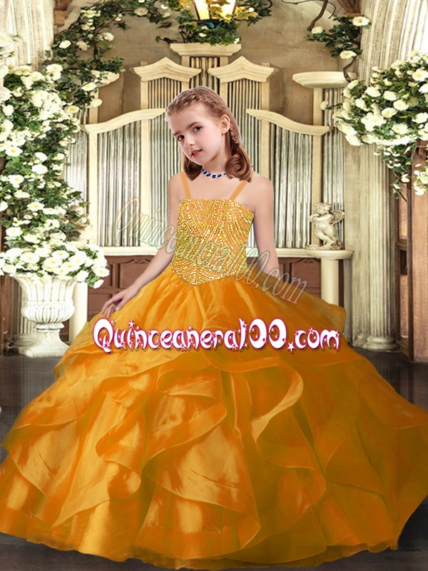 Neckline : StrapsShown Color : OrangeSilhouette : Ball GownsSleeve Length : sleevelessHemline : floor lengthBack Detail : Lace upFabric : OrganzaEmbellishment : Beading,RufflesOccasion : Party,Sweet 16,Quinceanera,Wedding PartySeason : Spring,Summer,Fall,Winter