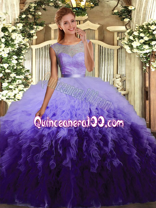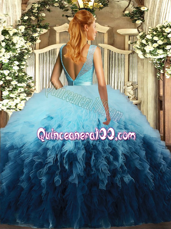 Neckline : ScoopShown Color : Multi-colorSilhouette : Ball GownsSleeve Length : sleevelessHemline : floor lengthBack Detail : BacklessFabric : TulleEmbellishment : Beading,RufflesOccasion : Sweet 16,QuinceaneraSeason : Spring,Summer,Fall,Winter