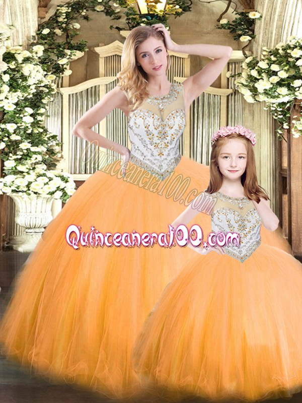 Neckline : ScoopShown Color : Orange RedSilhouette : Ball GownsSleeve Length : sleevelessHemline : floor lengthBack Detail : Lace upFabric : TulleEmbellishment : BeadingOccasion : Military Ball,Sweet 16,QuinceaneraSeason : Spring,Summer,Fall,Winter