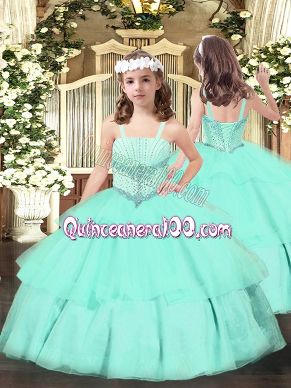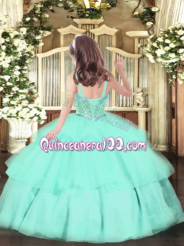 Neckline : StrapsShown Color : Apple GreenSilhouette : Ball GownsSleeve Length : sleevelessHemline : floor lengthBack Detail : Lace upFabric : OrganzaEmbellishment : Beading,Ruffled LayersOccasion : Party,QuinceaneraSeason : Spring,Summer,Fall,Winter