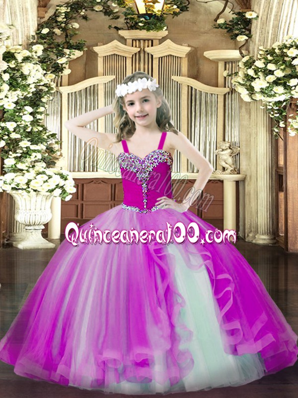 Neckline : StrapsShown Color : FuchsiaSilhouette : Ball GownsSleeve Length : sleevelessHemline : floor lengthBack Detail : Lace upFabric : TulleEmbellishment : BeadingOccasion : Party,QuinceaneraSeason : Spring,Summer,Fall,Winter