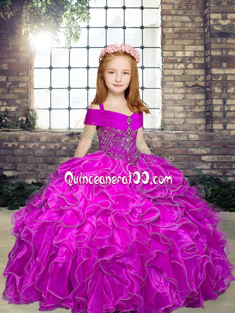 Neckline : StrapsShown Color : FuchsiaSilhouette : Ball GownsSleeve Length : sleevelessHemline : floor lengthBack Detail : Lace upFabric : OrganzaEmbellishment : Beading,RufflesOccasion : Party,Wedding PartySeason : Spring,Summer,Fall,Winter