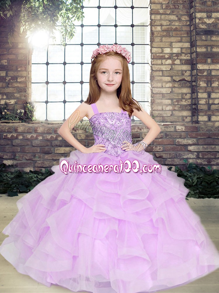Neckline : StrapsShown Color : LavenderSilhouette : Ball GownsSleeve Length : sleevelessHemline : floor lengthBack Detail : Lace upFabric : TulleEmbellishment : Beading,RufflesOccasion : Party,Military Ball,Wedding PartySeason : Spring,Summer,Fall,Winter