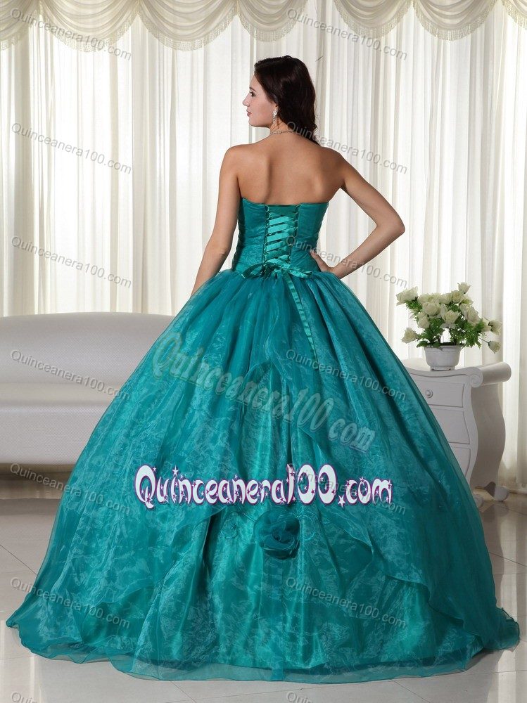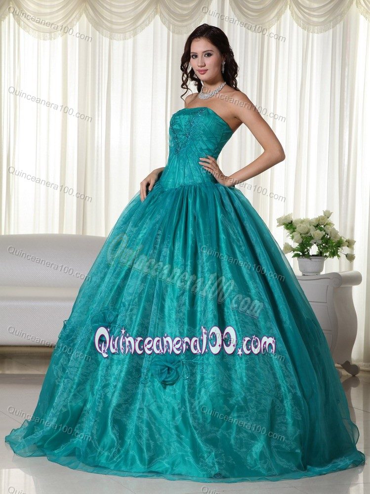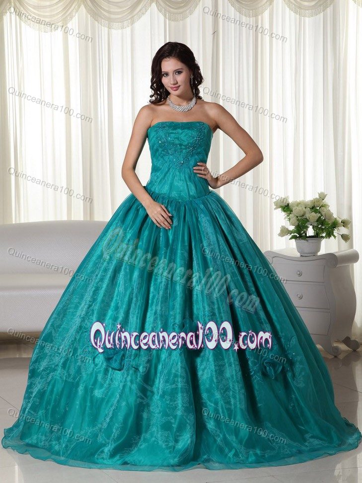 Neckline : StraplessShown Color : TurquoiseSilhouette : Ball GownsSleeve Length : sleevelessHemline : floor lengthBack Detail : Lace upFabric : OrganzaEmbellishment : BeadingOccasion : Sweet 16,QuinceaneraSeason : Spring,Summer,Fall,Winter