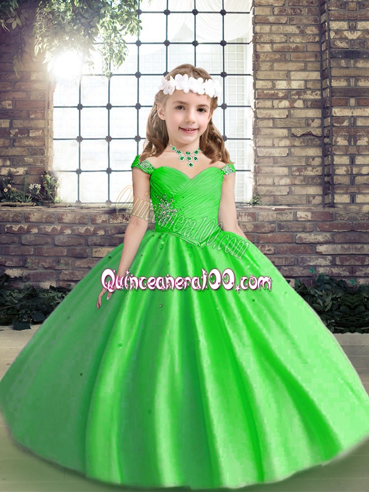 Neckline : StrapsShown Color : Spring GreenSilhouette : Ball GownsSleeve Length : sleevelessHemline : floor lengthBack Detail : Lace upFabric : TulleEmbellishment : BeadingOccasion : Party,Wedding PartySeason : Spring,Summer,Fall,Winter
