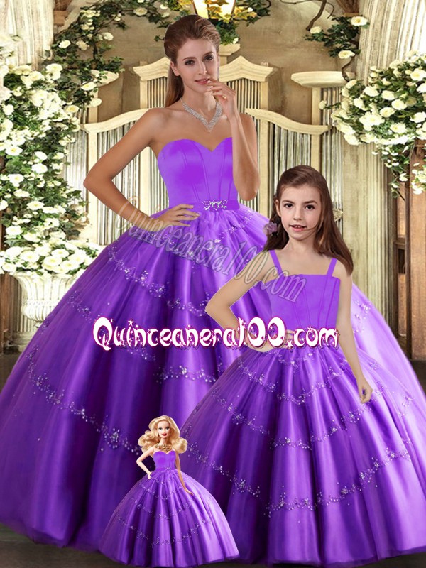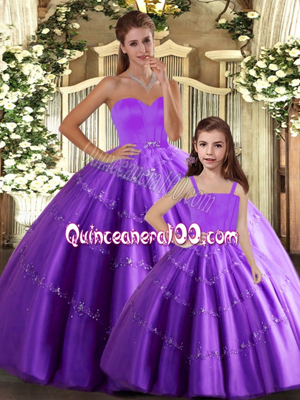 Neckline : SweetheartShown Color : Eggplant PurpleSilhouette : Ball GownsSleeve Length : sleevelessHemline : floor lengthBack Detail : Lace upFabric : TulleEmbellishment : BeadingOccasion : Sweet 16,QuinceaneraSeason : Spring,Summer,Fall,Winter