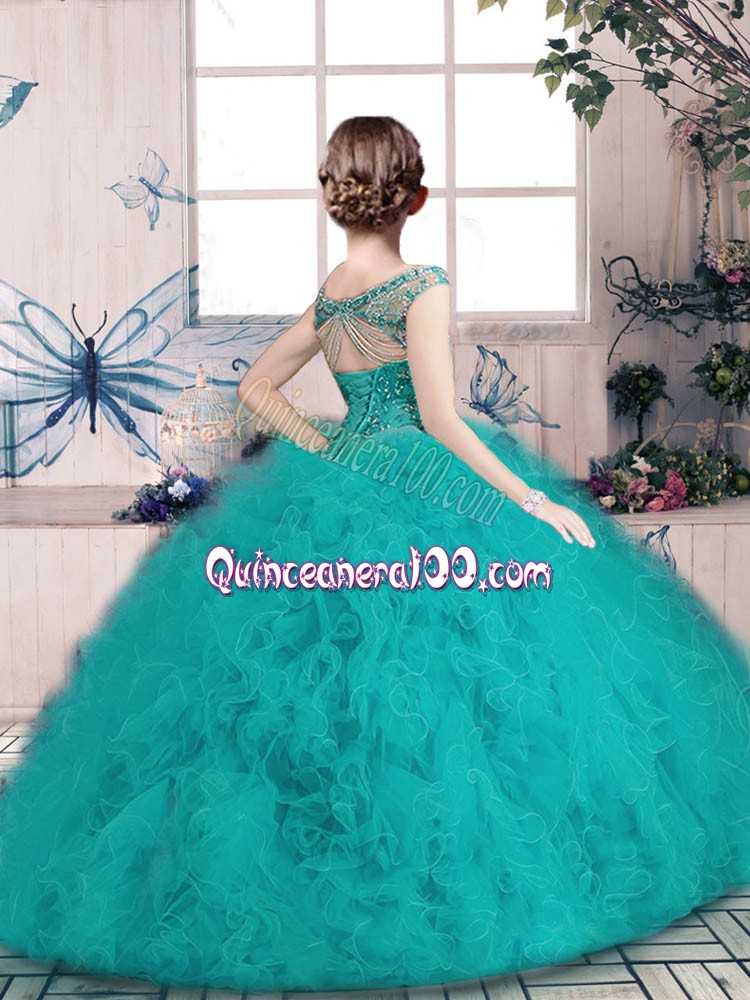 Lace Up Off The Shoulder Beading and Ruffles Evening Gowns Tulle Sleeveless