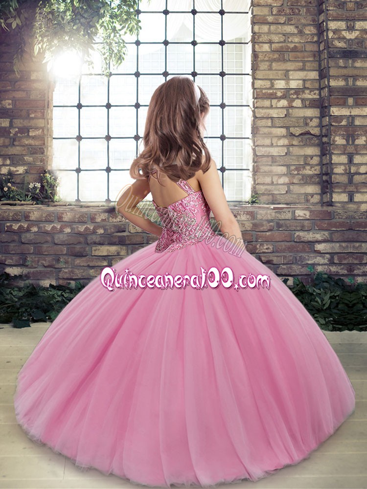 Neckline : ScoopShown Color : LilacSilhouette : Ball GownsSleeve Length : sleevelessHemline : floor lengthBack Detail : Lace upFabric : TulleEmbellishment : BeadingOccasion : Party,Wedding PartySeason : Spring,Summer,Fall,Winter