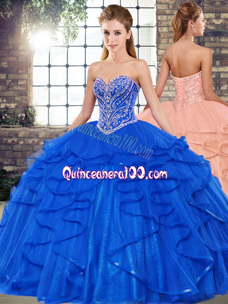 On Sale Royal Blue Sleeveless Beading and Ruffles Floor Length Quinceanera Dress