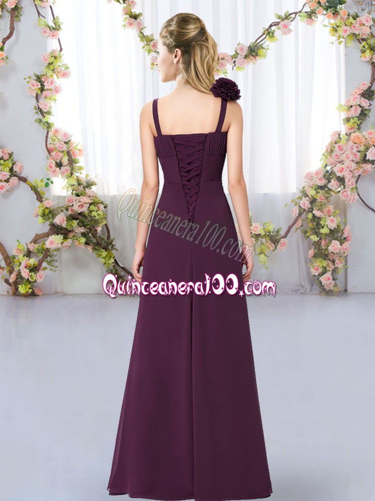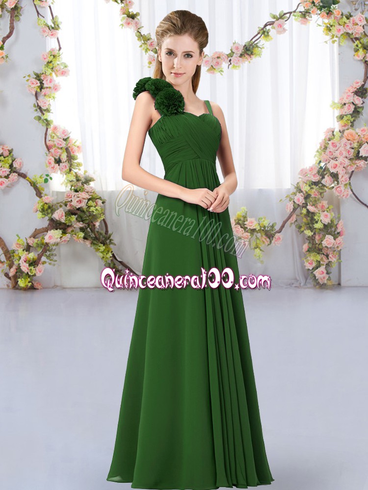 Dark Green Empire Straps Sleeveless Chiffon Floor Length Lace Up Hand Made Flower Damas Dress