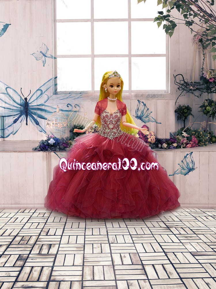 Neckline : Off the shoulderShown Color : BurgundySilhouette : Ball GownsSleeve Length : sleevelessHemline : floor lengthBack Detail : Lace upFabric : TulleEmbellishment : Beading,RufflesOccasion : Military Ball,Sweet 16,QuinceaneraSeason : Spring,Summer,Fall,Winter