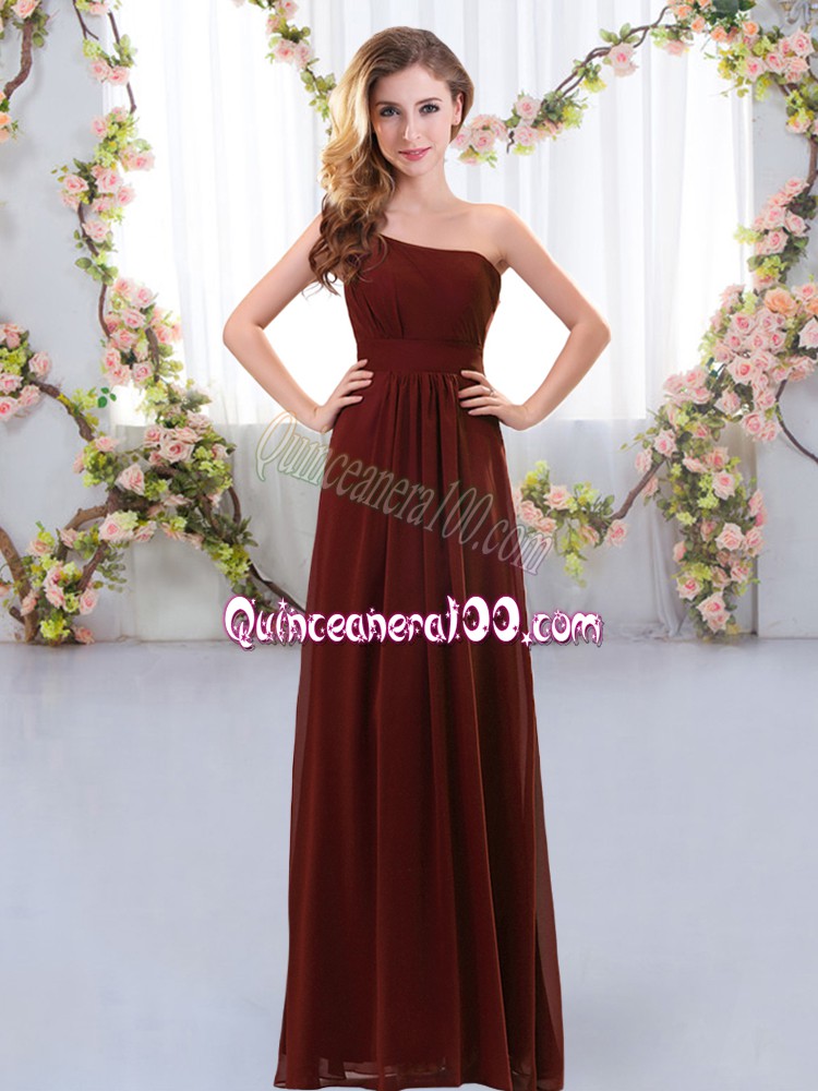 Neckline : One shoulderShown Color : BrownSilhouette : EmpireSleeve Length : sleevelessHemline : floor lengthBack Detail : ZipperFabric : ChiffonEmbellishment : RuchingOccasion : Wedding PartySeason : Spring,Summer,Fall,Winter