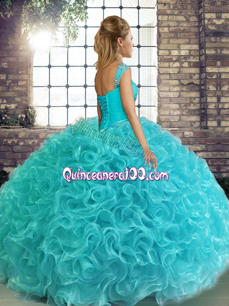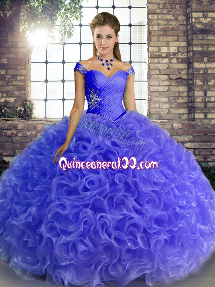 Neckline : Off the shoulder Shown Color : Blue Silhouette : Ball Gowns Sleeve Length : sleeveless Hemline : floor length Back Detail : Lace up Fabric : Fabric With Rolling Flowers Embellishment : Beading Occasion : Military Ball,Sweet 16,Quinceanera Season : Spring,Summer,Fall,Winter