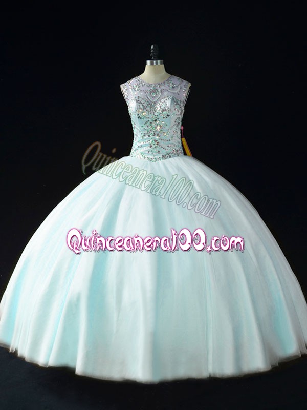 Neckline : ScoopShown Color : Apple GreenSilhouette : Ball GownsSleeve Length : sleevelessHemline : floor lengthBack Detail : Lace upFabric : TulleEmbellishment : BeadingOccasion : Sweet 16,QuinceaneraSeason : Spring,Summer,Fall,Winter