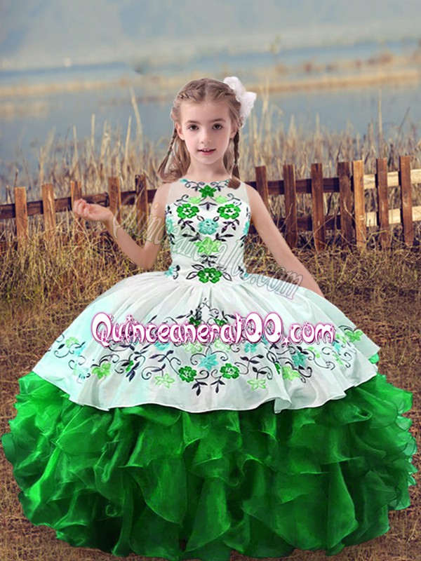 Scoop Sleeveless Lace Up Little Girls Pageant Gowns Green Organza
