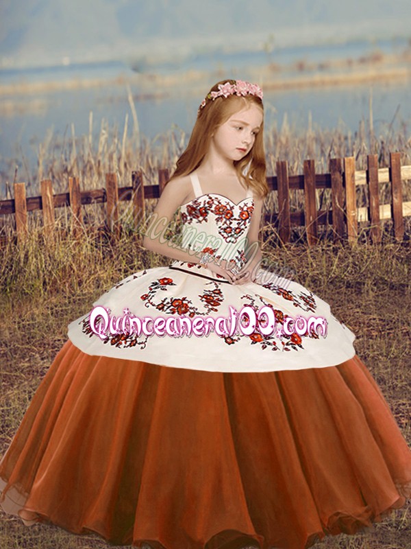 Neckline : StrapsShown Color : Rust RedSleeve Length : sleevelessHemline : floor lengthBack Detail : Lace upFabric : OrganzaEmbellishment : Embroidery,Ruffled LayersOccasion : Party,Wedding PartySeason : Spring,Summer,Fall,Winter