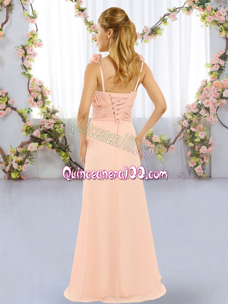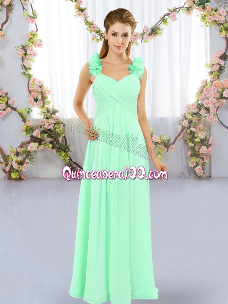 Floor Length Apple Green Court Dresses for Sweet 16 Chiffon Sleeveless Hand Made Flower