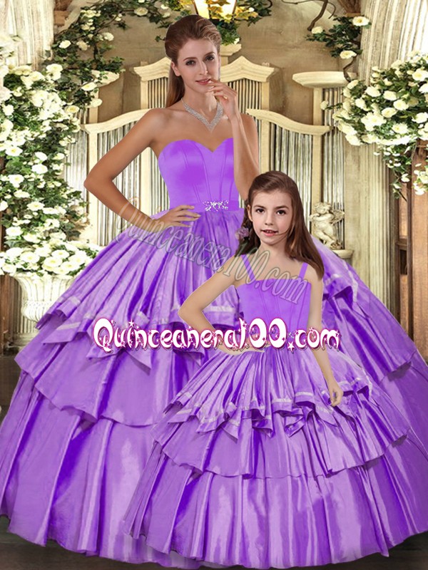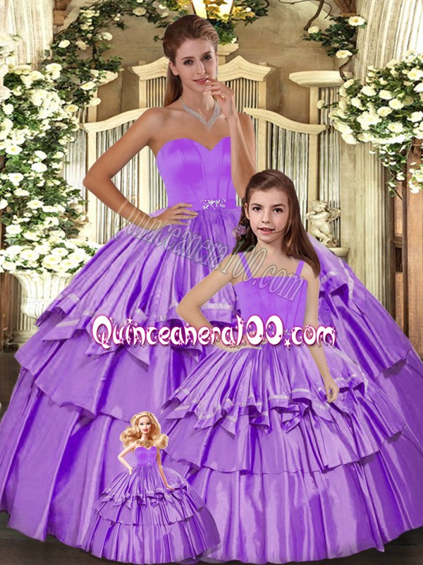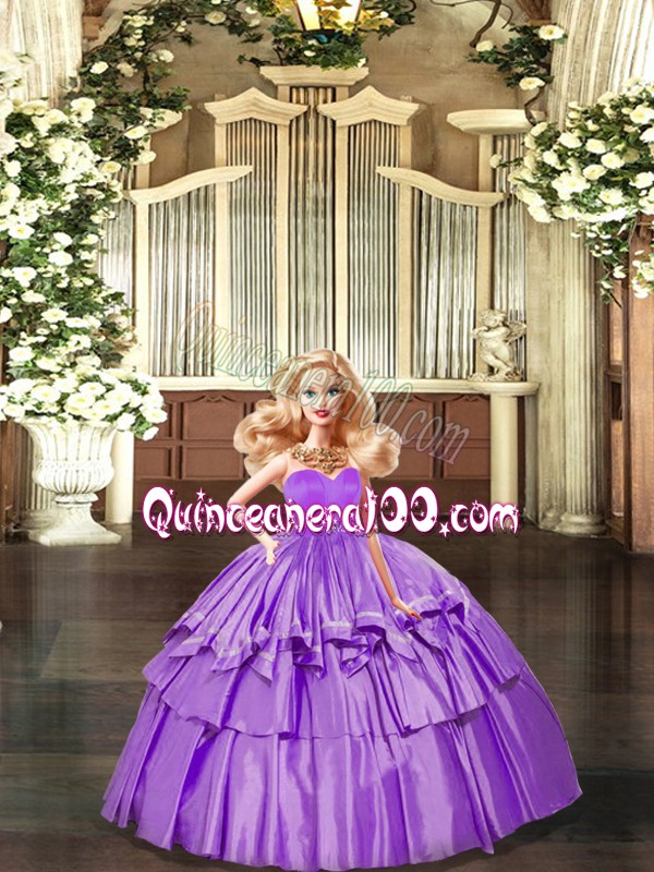 Neckline : SweetheartShown Color : LilacSilhouette : Ball GownsSleeve Length : sleevelessHemline : floor lengthBack Detail : Lace upFabric : TaffetaEmbellishment : Ruffled LayersOccasion : Sweet 16,QuinceaneraSeason : Spring,Summer,Fall,Winter
