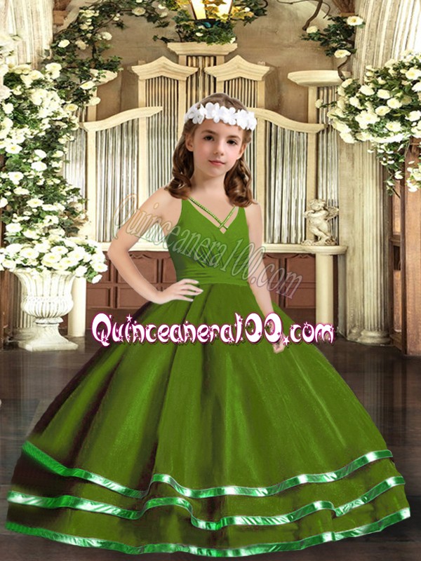 Neckline : V-neckShown Color : GreenSilhouette : Ball GownsSleeve Length : sleevelessHemline : floor lengthBack Detail : ZipperFabric : TulleEmbellishment : Ruffled LayersOccasion : Party,Wedding PartySeason : Spring,Summer,Fall,Winter