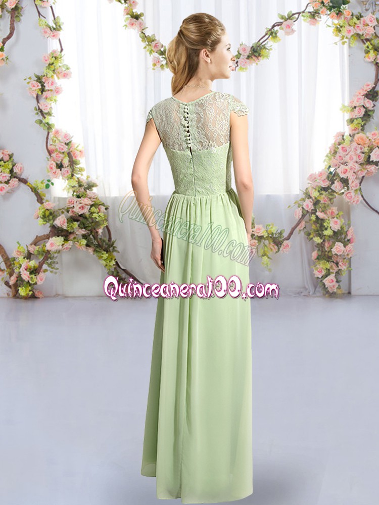 Neckline : ScoopShown Color : Apple GreenSilhouette : EmpireSleeve Length : cap sleevesHemline : floor lengthBack Detail : Clasp handleFabric : ChiffonEmbellishment : LaceOccasion : Wedding PartySeason : Spring,Summer,Fall,Winter