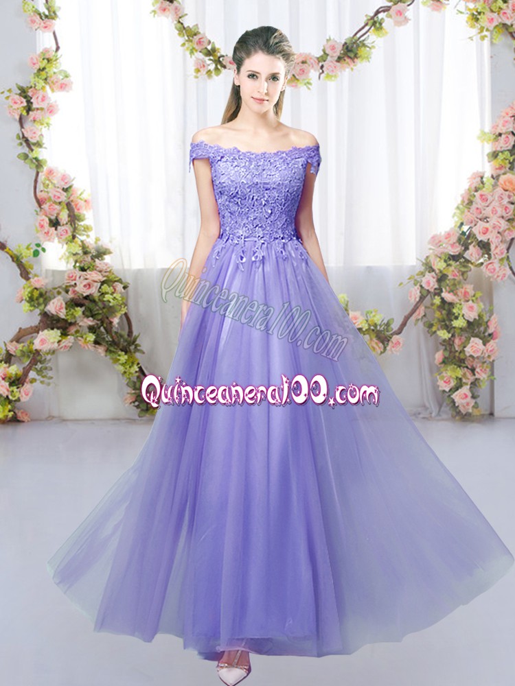 Neckline : Off the shoulderShown Color : LavenderSilhouette : EmpireSleeve Length : sleevelessHemline : floor lengthBack Detail : Lace upFabric : TulleEmbellishment : LaceOccasion : Prom,Party,Wedding PartySeason : Spring,Summer,Fall,Winter