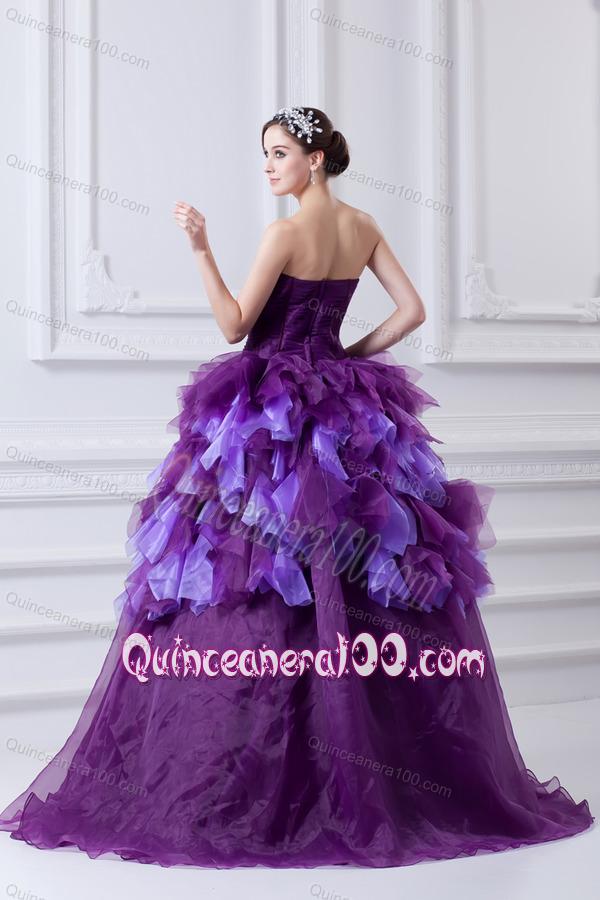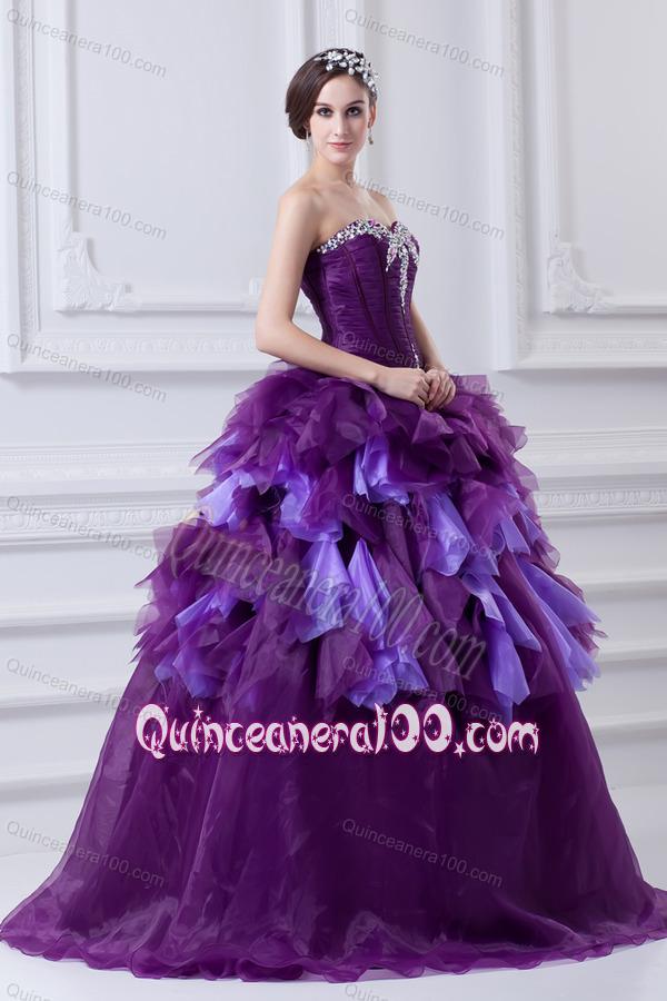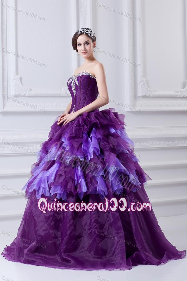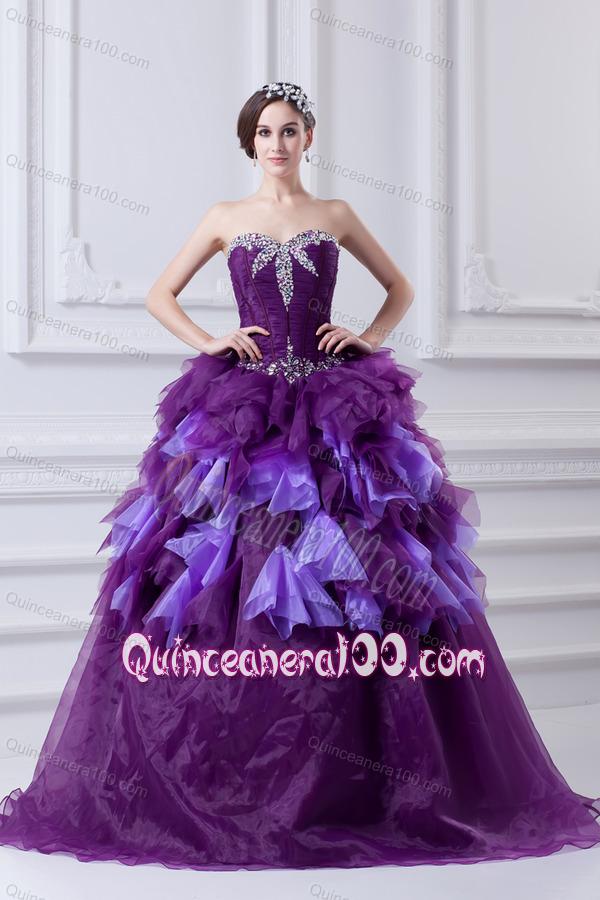 Neckline : SweetheartShown Color : PurpleSilhouette : Ball GownsSleeve Length : sleevelessHemline : floor lengthBack Detail : ZipperFabric : Organza,TulleEmbellishment : Beading,RufflesOccasion : Prom,Military Ball,Sweet 16,QuinceaneraSeason : Spring,Summer,Fall,Winter