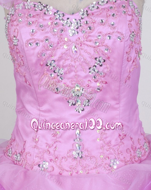 Neckline : SweetheartShown Color : Pink,Rose PinkSilhouette : Ball GownsSleeve Length : sleevelessHemline : floor lengthBack Detail : Lace upFabric : Organza,TulleEmbellishment : Beading,EmbroideryOccasion : Prom,Military Ball,QuinceaneraSeason : Spring,Summer,Fall,Winter