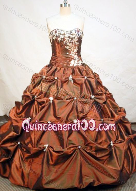 Neckline : SweetheartShown Color : BrownSilhouette : Ball GownsSleeve Length : sleevelessHemline : floor lengthBack Detail : Lace upFabric : TaffetaEmbellishment : Embroidery,Pick UpsOccasion : Prom,Military Ball,Sweet 16Season : Spring,Summer,Fall,Winter