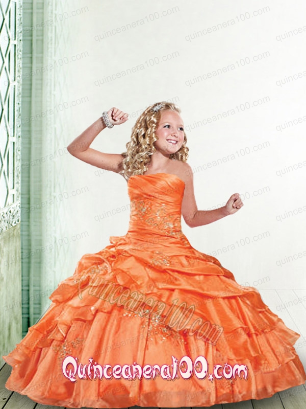 Neckline : StraplessShown Color : OrangeSilhouette : Ball GownsSleeve Length : sleevelessHemline : floor lengthBack Detail : Lace upFabric : OrganzaEmbellishment : Appliques,RufflesOccasion : Party,Wedding PartySeason : Spring,Summer,Fall,Winter