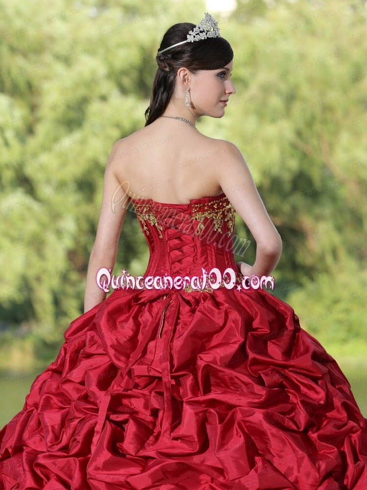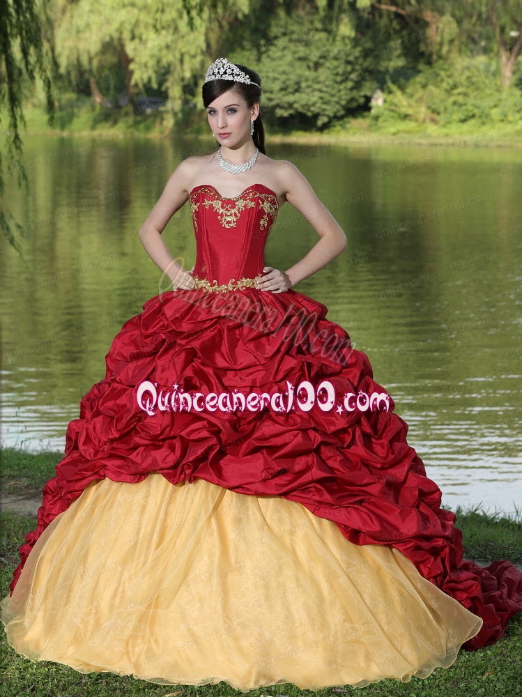 Neckline : SweetheartShown Color : Multi-colorSilhouette : Ball GownsSleeve Length : sleevelessHemline : with trainBack Detail : Lace upFabric : Organza,TaffetaEmbellishment : Beading,Appliques,Pick Ups
