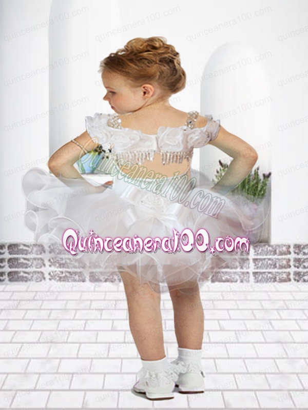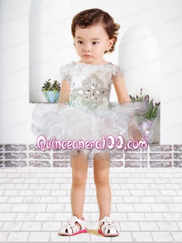 White Scoop Beading and Ruffles Short Sleeves Popular Little Girl Dresses for 2014