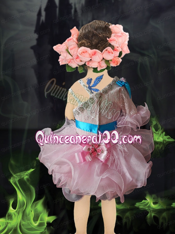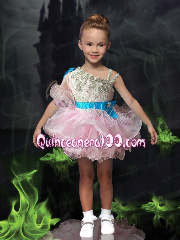 Neckline : AsymmetricShown Color : Baby PinkSilhouette : A-lineSleeve Length : sleevelessHemline : mini lengthBack Detail : ZipperFabric : OrganzaEmbellishment : Beading,Sashes|ribbonsOccasion : Party,Wedding PartySeason : Spring,Summer,Fall