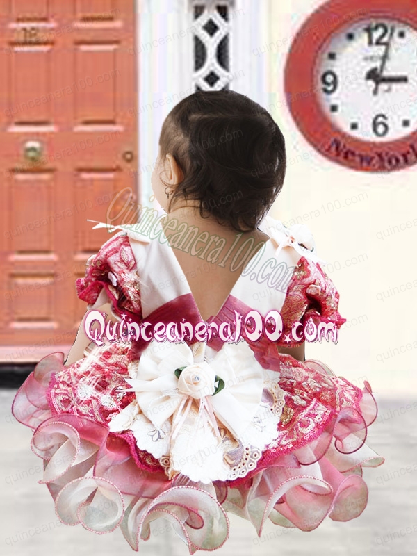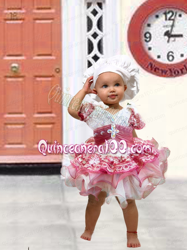 V-neck Short Sleeves Beading and Ruffles Little Girl Dresses for 2014