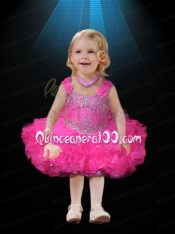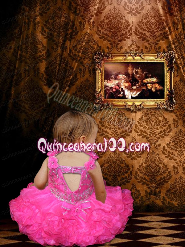 Neckline : StrapsShown Color : Hot PinkSilhouette : Ball GownsSleeve Length : sleevelessHemline : knee lengthBack Detail : BacklessFabric : OrganzaEmbellishment : Ruffles,Hand Made FlowerOccasion : Party,Wedding PartySeason : Spring,Summer,Fall