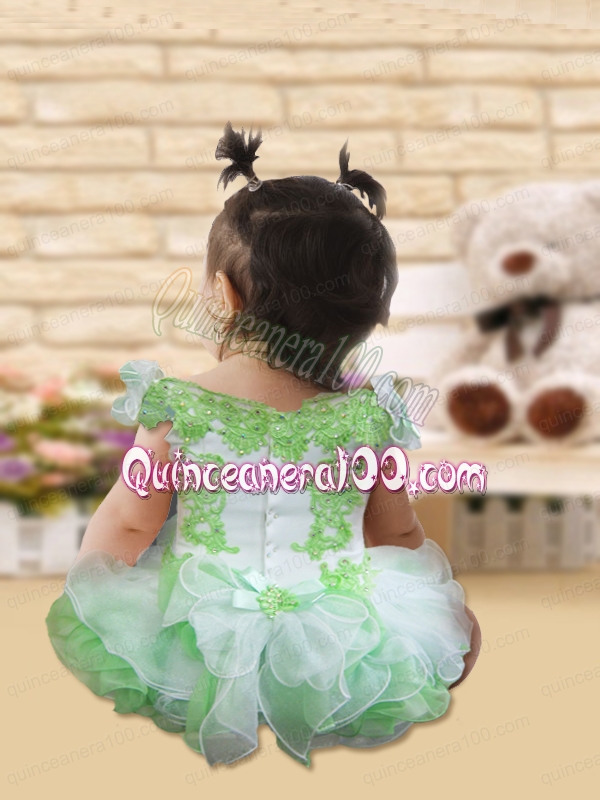 Neckline : V-neckShown Color : Multi-colorSilhouette : A-lineSleeve Length : sleevelessHemline : mini lengthBack Detail : Clasp handleFabric : OrganzaEmbellishment : Appliques,BowknotOccasion : Party,Wedding PartySeason : Spring,Summer,Fall