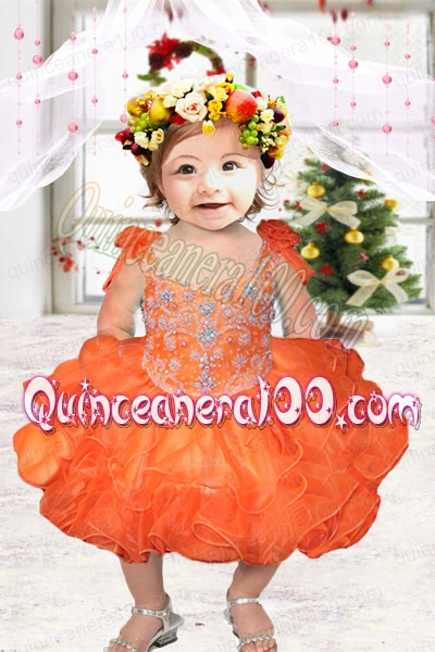 Neckline : StrapsShown Color : OrangeSilhouette : Ball GownsSleeve Length : sleevelessHemline : knee lengthBack Detail : ZipperFabric : OrganzaEmbellishment : Beading,Hand Made FlowerOccasion : Party,Wedding PartySeason : Spring,Summer,Fall