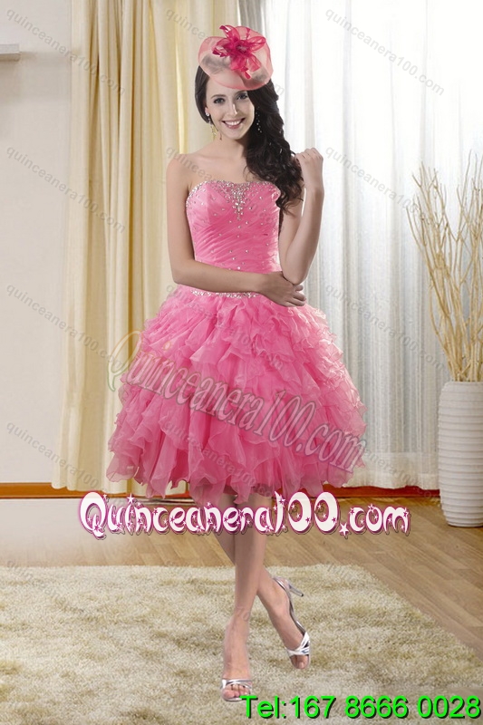 Neckline : StraplessShown Color : PinkSilhouette : ShortSleeve Length : sleevelessHemline : knee lengthBack Detail : Lace upFabric : OrganzaEmbellishment : Beading,RuchingOccasion : Prom,PartySeason : Spring,Summer,Fall