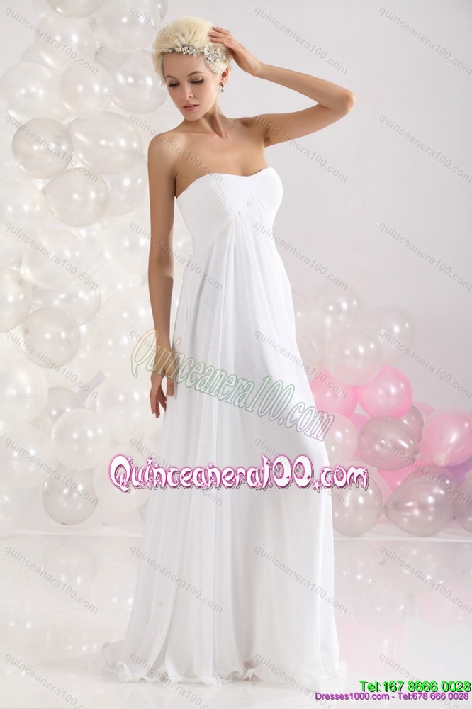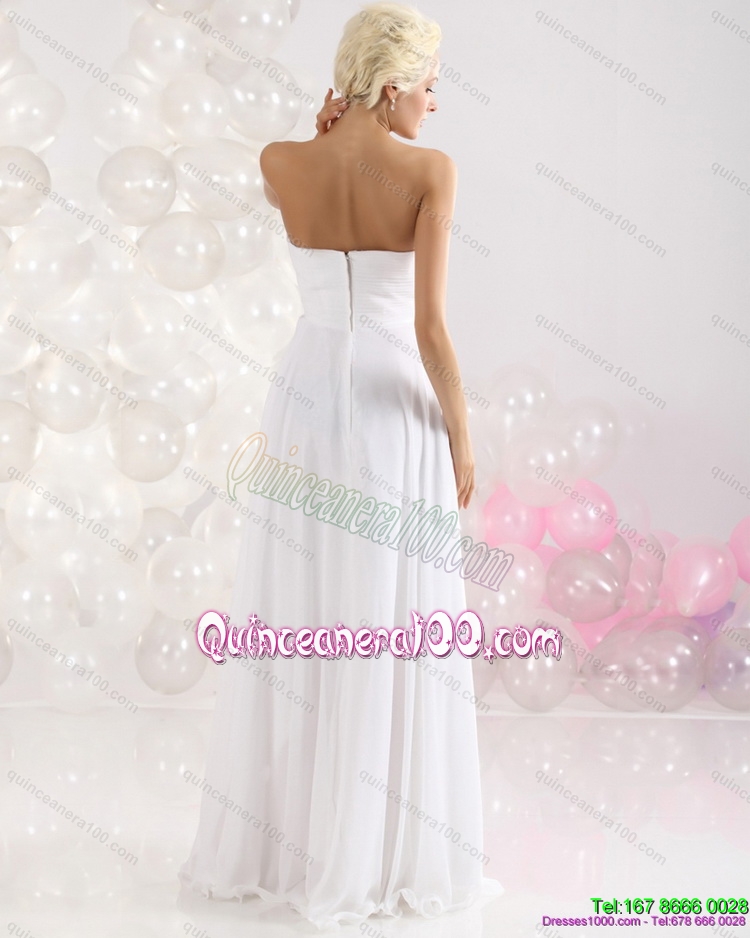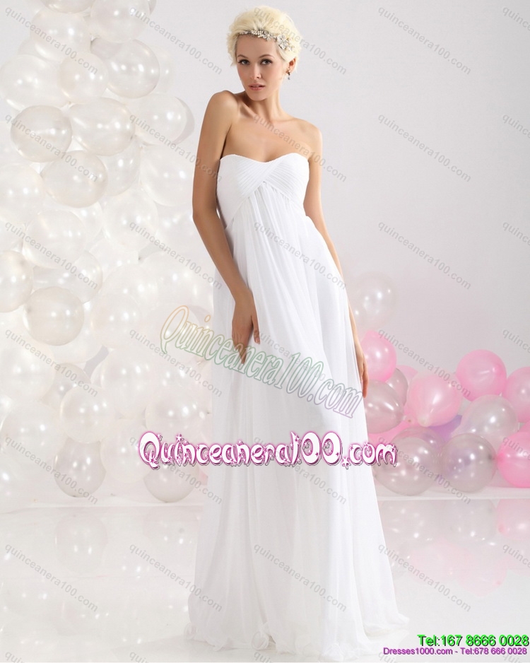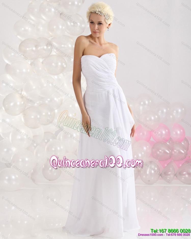 Neckline : SweetheartShown Color : WhiteSilhouette : EmpireSleeve Length : sleevelessHemline : floor lengthBack Detail : ZipperFabric : ChiffonEmbellishment : RuchingOccasion : Prom,PartySeason : Spring,Summer,Fall