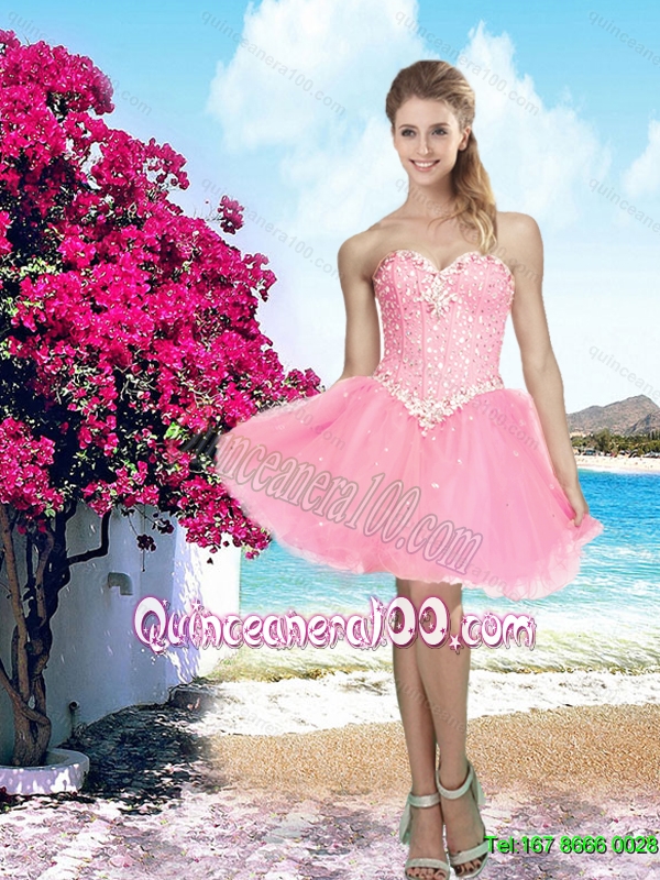 Neckline : SweetheartShown Color : PinkSilhouette : ShortSleeve Length : sleevelessHemline : knee lengthBack Detail : Lace upFabric : OrganzaEmbellishment : BeadingOccasion : Prom,Party,Wedding PartySeason : Spring,Summer,Fall